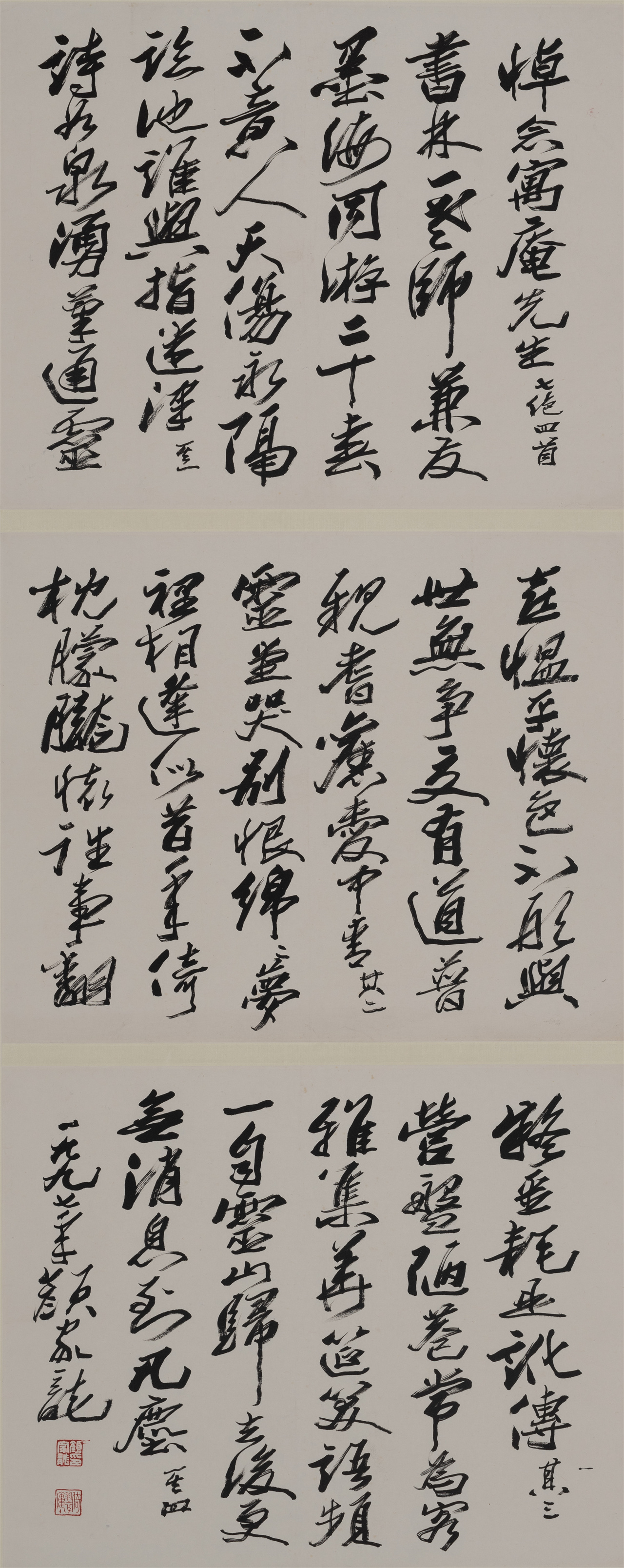 ▲颜家龙 《悼念寓庵先生七绝四首》 45×56cm×3 1997年