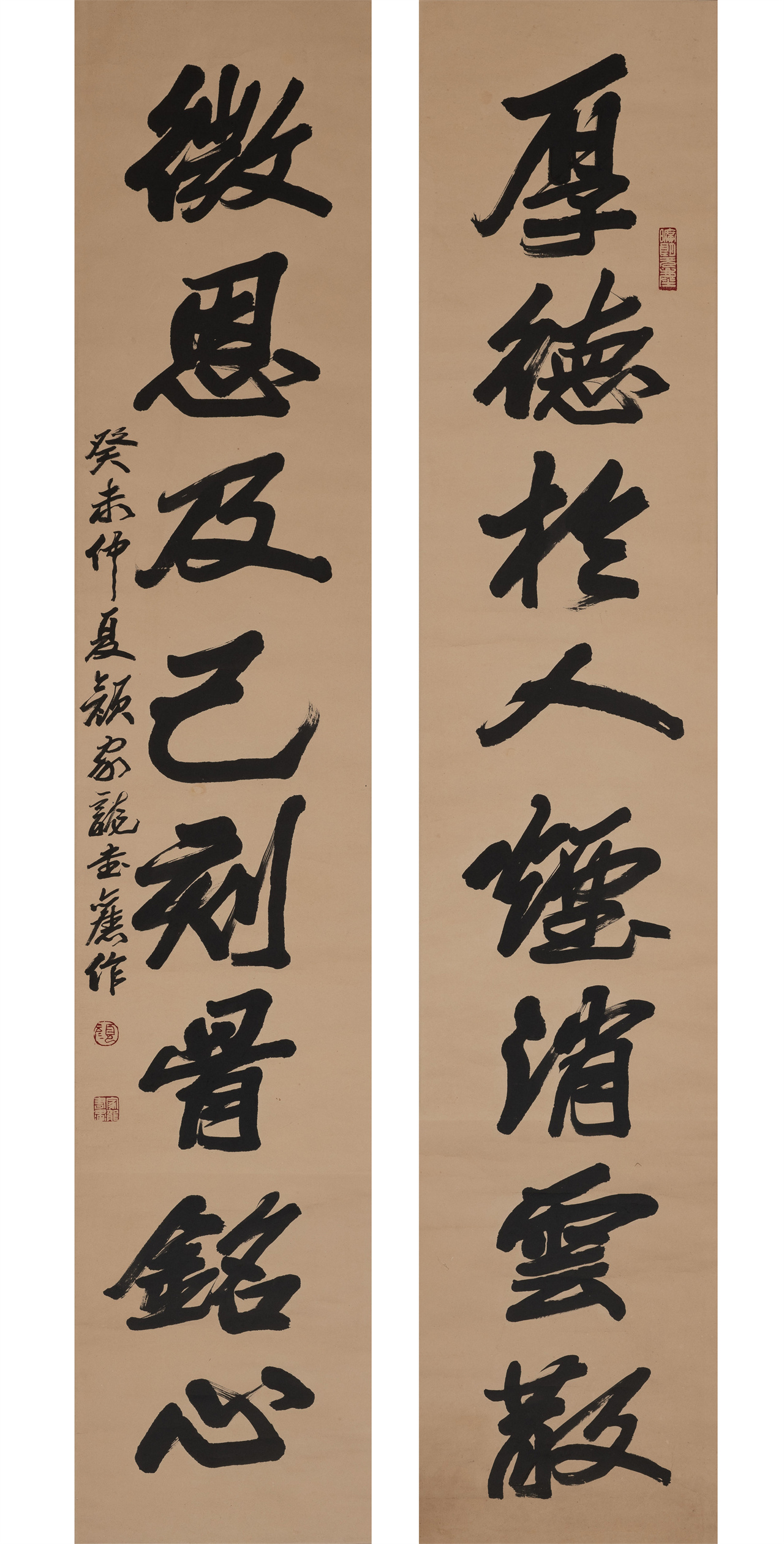 ▲颜家龙 《厚德微恩联》 177.5×34.5cm x2 2003年