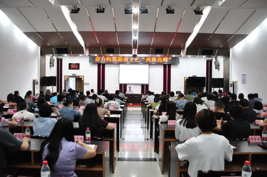 7月15日上午,省文联党组书记、副主席夏义生同志以“奋力构筑湖南文艺‘ 两座高峰’”为题为省文联全体干部职工讲授党课,传达学习省委书记张庆伟在省文联、省作协调研座谈会上讲话精神。省文联党组成员、省各文艺家协会、机关各处室、各直属单位干部职工120余人参加学习。